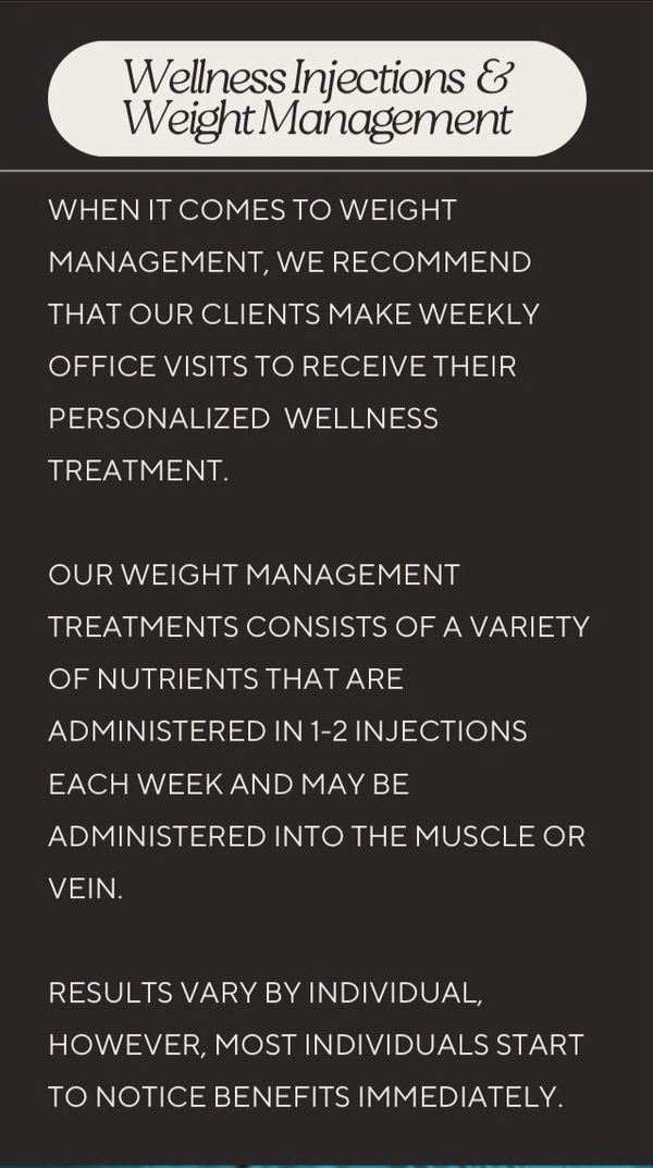 Our weight management approach integrates advanced wellness therapies such as vitamin injections, diet modifications and lifestyle recommendations to optimize metabolism, energy, and overall body composition.